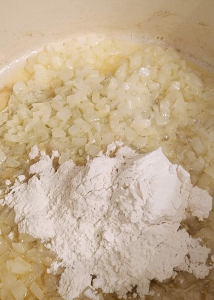 • Mix in flour and stir for 1-2 minute, until lightly toasted.