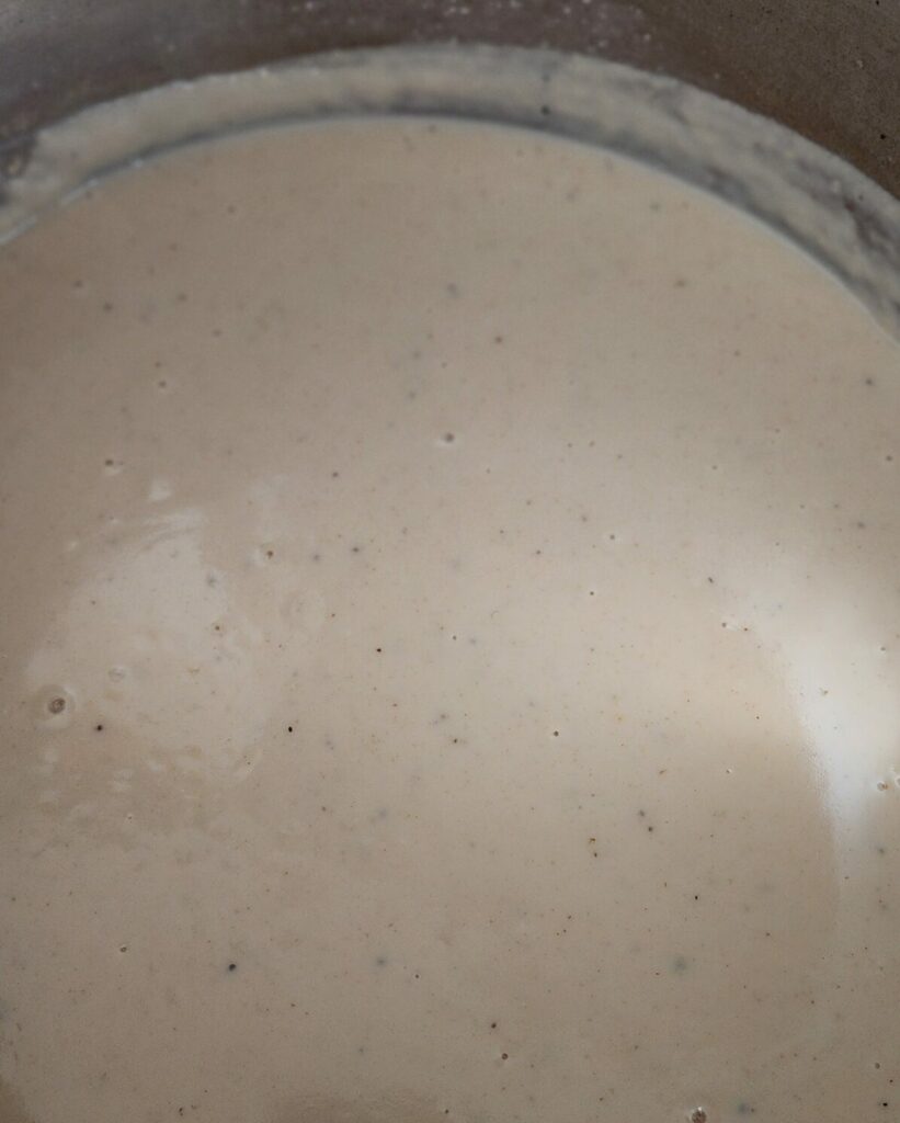 Continue whisking to make sure it doesn’t stick to the pan or form clumps. Let it reach near boiling and turn the heat off.
