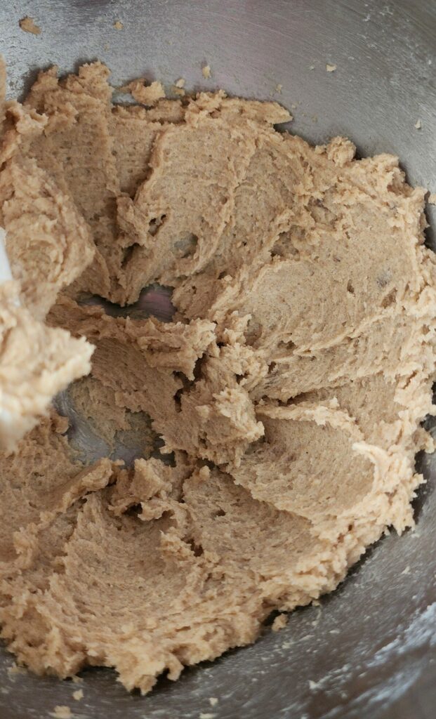 • In a separate mixing bowl, cream together the butter and brown sugar.