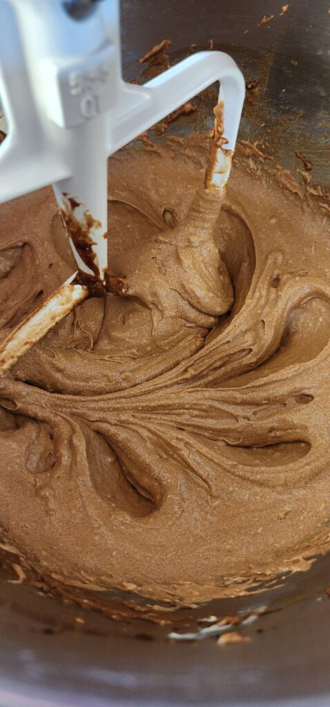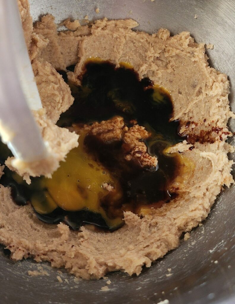 After the butter and sugar are fully creamed, add the molasses, egg, and vanilla and beat until creamy.