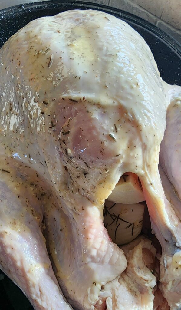 • 1 Large Turkey The best results come from a brined turkey. https://wistfulwoodsfarm.com/turkey-brine-recipe/